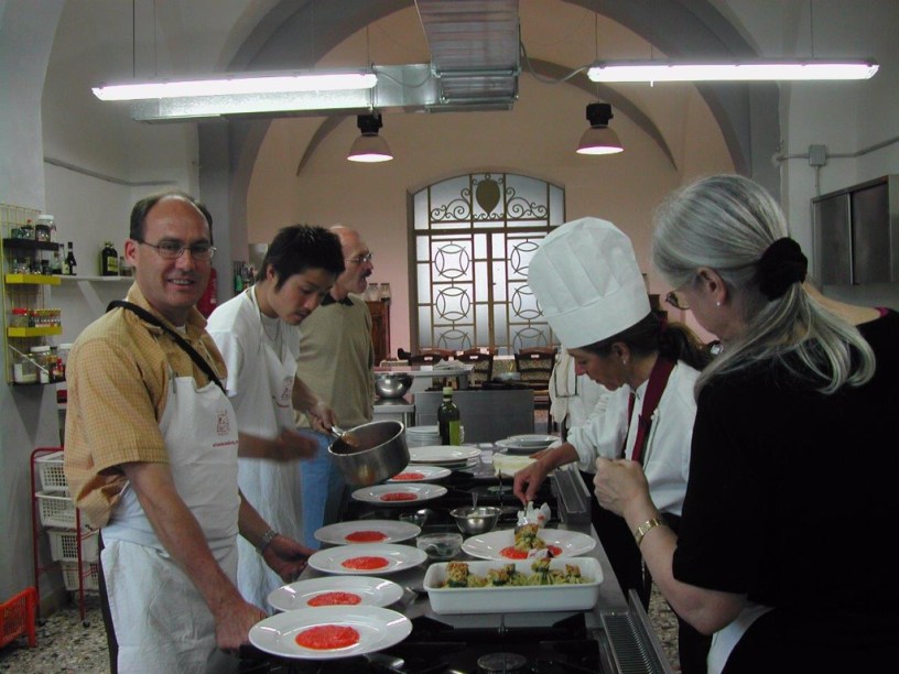 One of the highlights of our journey (mostly rail) through Italy was doing a fabulous cooking course in Siena. At the time (2005) courses like this for tourists seemed to be unheard of in Europe (more seemed to be happening in Asia). With our super basic Italian (mostly greetings, food names, etc), we headed to a tourist info centre in Siena; explained that we were staying in Tuscany for a week; then asked if there was a place in a 1 day class. They looked very puzzled and uncertain but promptly investigated for us (1st request for this they said!) and they were clearly delighted when they informed us that they had a class at the local Arts School.