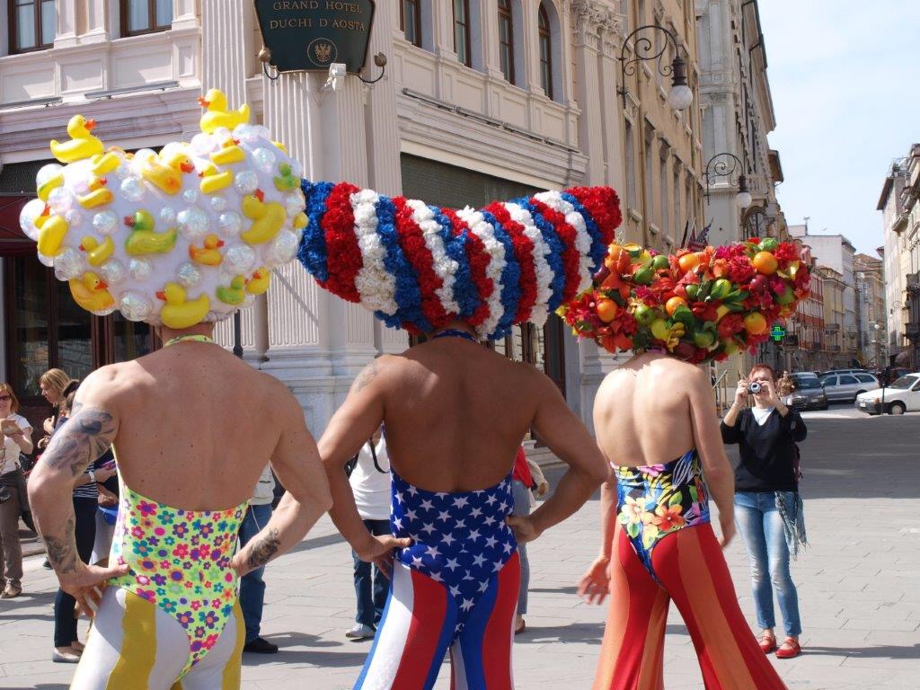 We loved our 4 nights/3 days in Trieste and we were lucky enough to be there for their “Remembering Boston Marathon” (see photo) and other festivities including the opening of Priscilla Queen of the Desert (originated from Australia and was touring the world – see photo). Whenever we mentioned to locals that we’re Australian they presumed we were part of the performance or crew. So we were accidental tourists in the right place at the right time as the music in the old town piazza was fabulous too + not too crowded. That was the best part about Trieste – in 2013, it hadn’t been overrun by cruise ship passengers even though it is on the water.