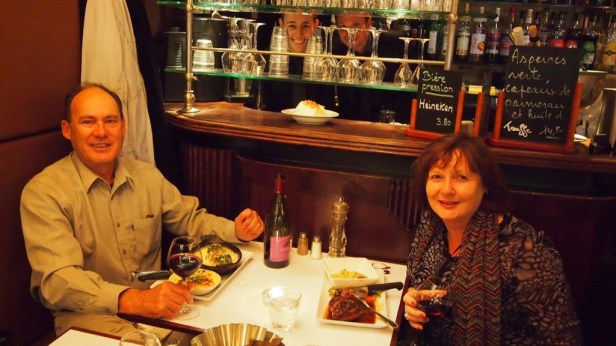 We visited a few traditional Bouchens (like the one in the photo above) as well as a newer concept, modern wine/cheese bars. Not only are the Bouchens unpretentious but they serve many traditional favourites of French cuisine – dishes that were served in working class communities over many generations. For example, a huge variety of sausages as well as pork dishes including pig trotter’s. If you didn’t learn much French at High School, and you want to explore beyond the touristy Bouchens (many have English menus), it might be a good idea to learn the French words for your favourite recipes. We’ve listed some of our favourite French dishes below – we love how it’s now so easy to get the French translation and pronunciation on the Net! The rest of our French is quite limited (mostly greetings etc) although I have been known to make myself understood when we encountered a car parking sign and a pleasant French woman (to my delight!) understood my question; unfortunately her initial response was too fast for my understanding but it’s amazing how it’s possible to communicate with very basics + sign language & a grateful smile! She probably saved us €100s as we were about to park in the wrong place. So, if you’re driving perhaps learn more French than we did + practise driving in very narrow laneways etc.