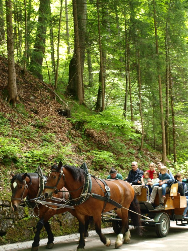 It’s probably quite possible to do this walk & visit independently but we did see some people turned away at the castle entry as they hadn’t reserved their tickets. If the walk up is too difficult it is possible to drive up although parking looked very limited for private vehicles. Our tour guide did organise for our small group van driver to give 1 elderly woman in our group a lift up to the castle. We met up with her at the castle entry. Another way to travel up and down the mountain is via horse & carriage as in photo below. We took this photo on our walk back down the road.