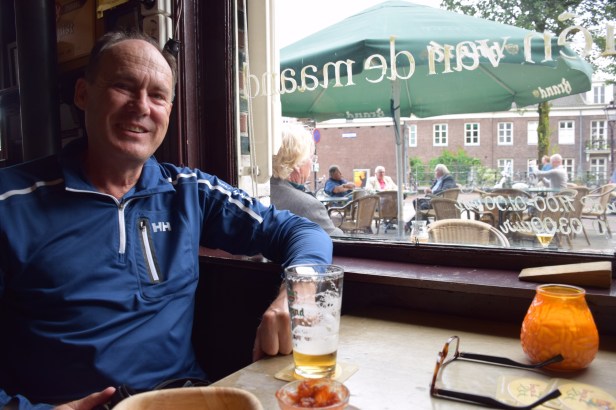 Another pleasant rail journey – with a dining car and very comfortable seats the 5+ hours just seemed to fly by. Amsterdam station is historic (see photo of exterior) but very modern and efficient inside. We were able to walk to our B&B which was one of the quirkier places we’ve stayed (we like staying at historically interesting places – see photo)…a former warehouse with the lovely breakfast room/shared space on the top floor. Our room was quite spacious – again up many steps (no lift) so you need average fitness although there was a young man working there who carried our luggage up for us.