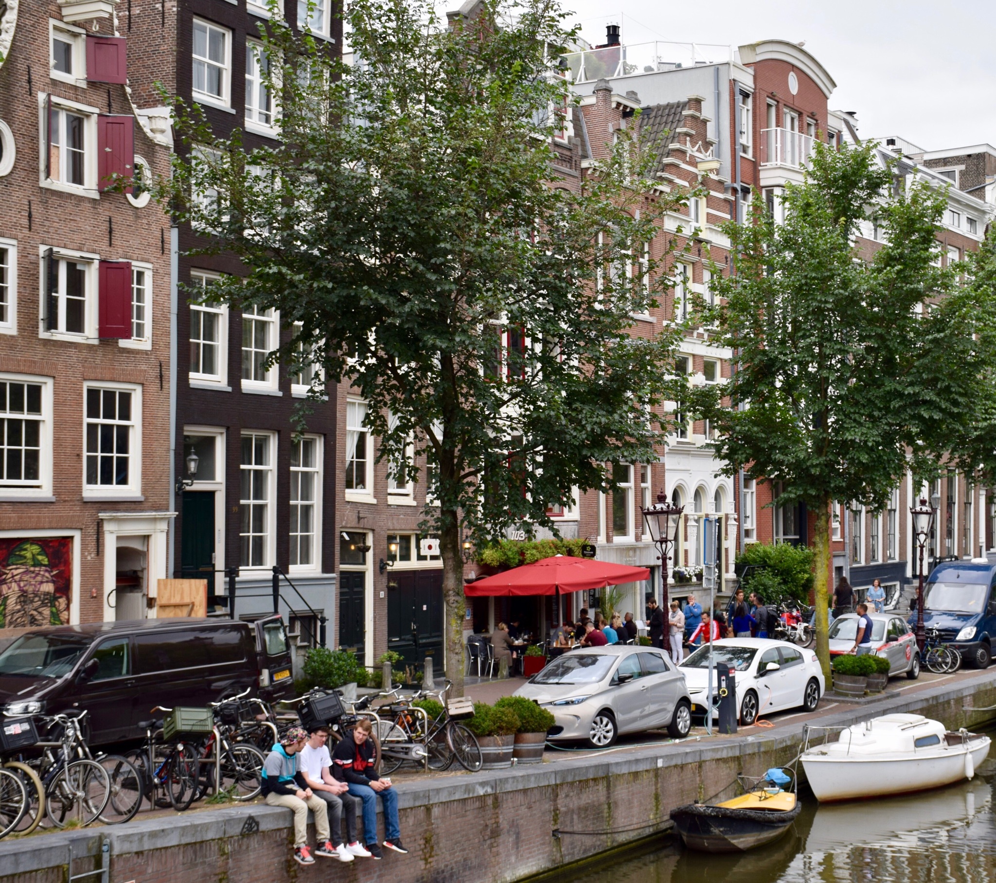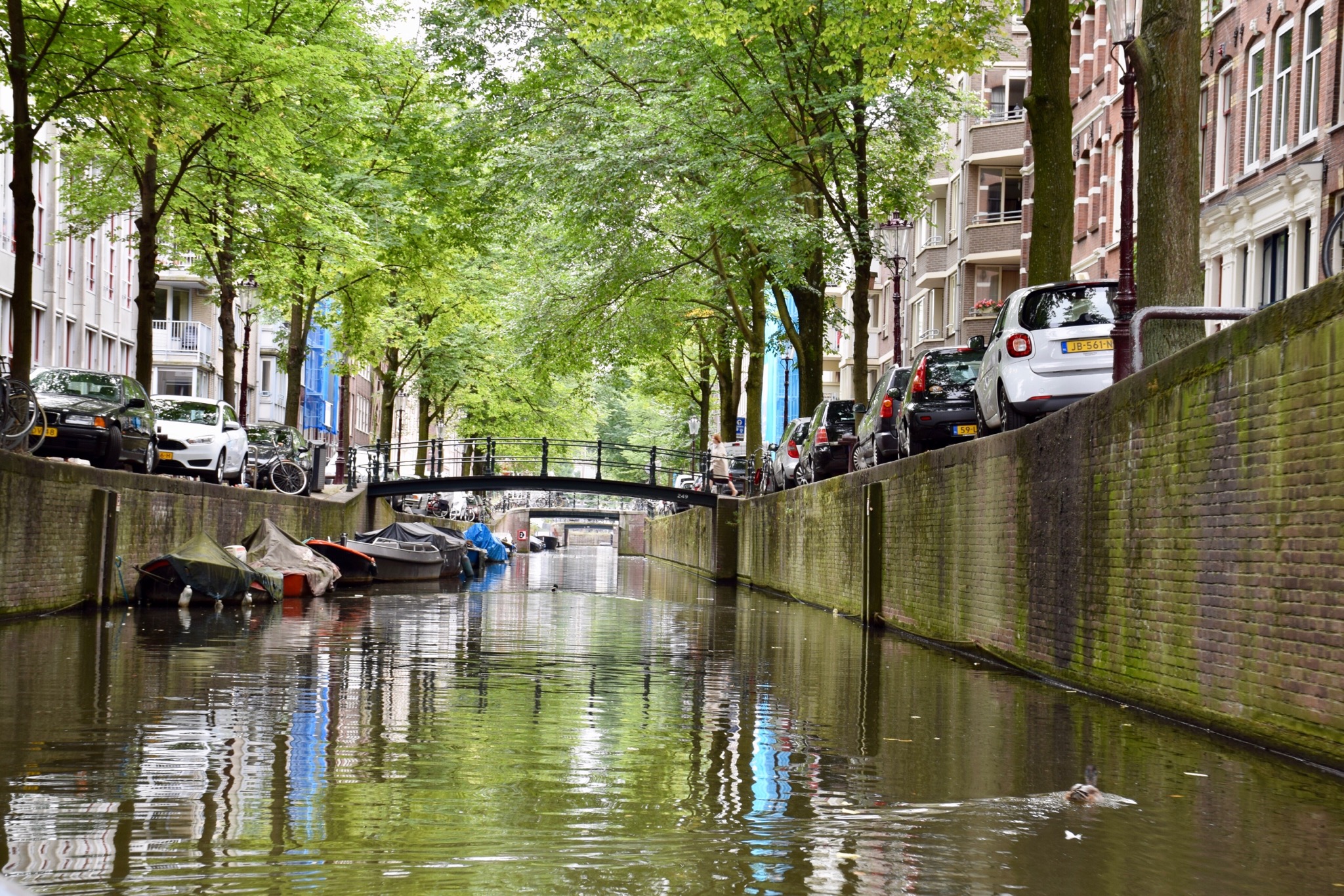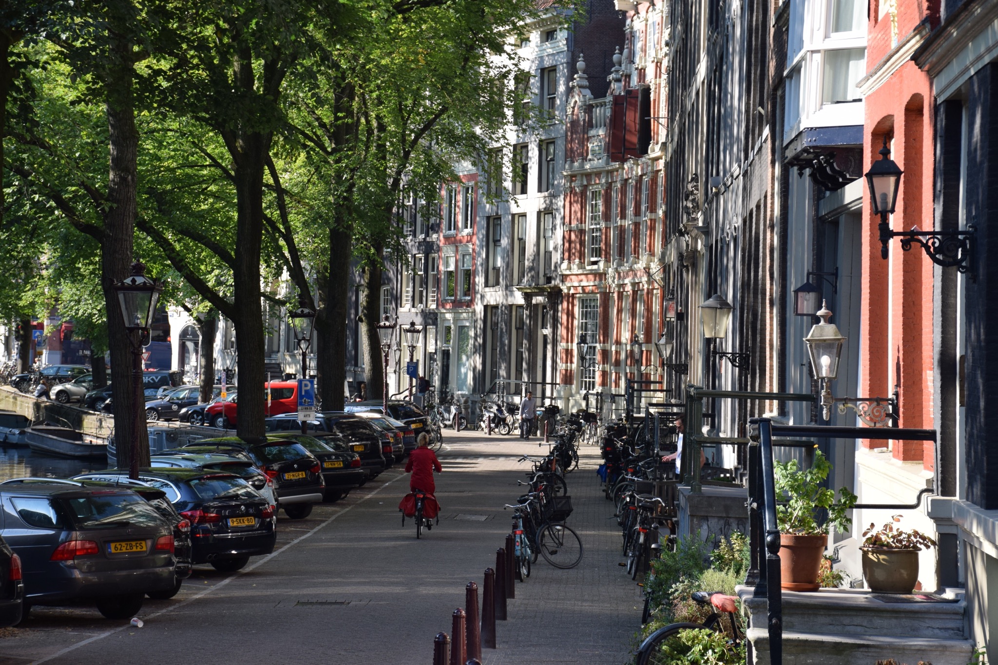 Amsterdam is a vibrant city with so many bikes, boats and cars…mostly smaller cars as they need to be able to manoeuvre into tight spaces as can be seen in photos above & especially below. There are also lots of loading zone parking spots for delivery vans but it seemed that finding parking was a challenge so we’re glad we didn’t hire a car on this stay. We took a small boat tour around the canals (about 8 passengers) – our tour guide said that on average about 1 car/week ends up in a canal but on a good year 30 or so cars/year.