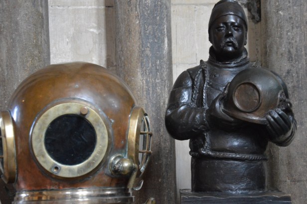 An interesting hero!…see photo below. How could a deep sea diver save the Winchester Cathedral? Talk with an adult, get some clues from the next 2 photos and then research the story behind this famous man whose statue, in his honour, can be found inside the Cathedral. You could go to http://www.winchester-cathedral.org.uk for William Walker’s story “The diver who saved the cathedral”.