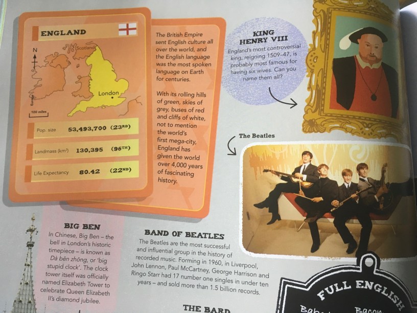 The mystery of Stonehenge is related to the question…how did the stones get there? “Evidence suggests some of the iconic stones travelled all the way from Wales (see map) – 250 Km (155 miles) away! Some of the stones weigh a whopping 27 tons!” (Lonely Planet for Kids ’16…A Journey Through Every Country in the World)