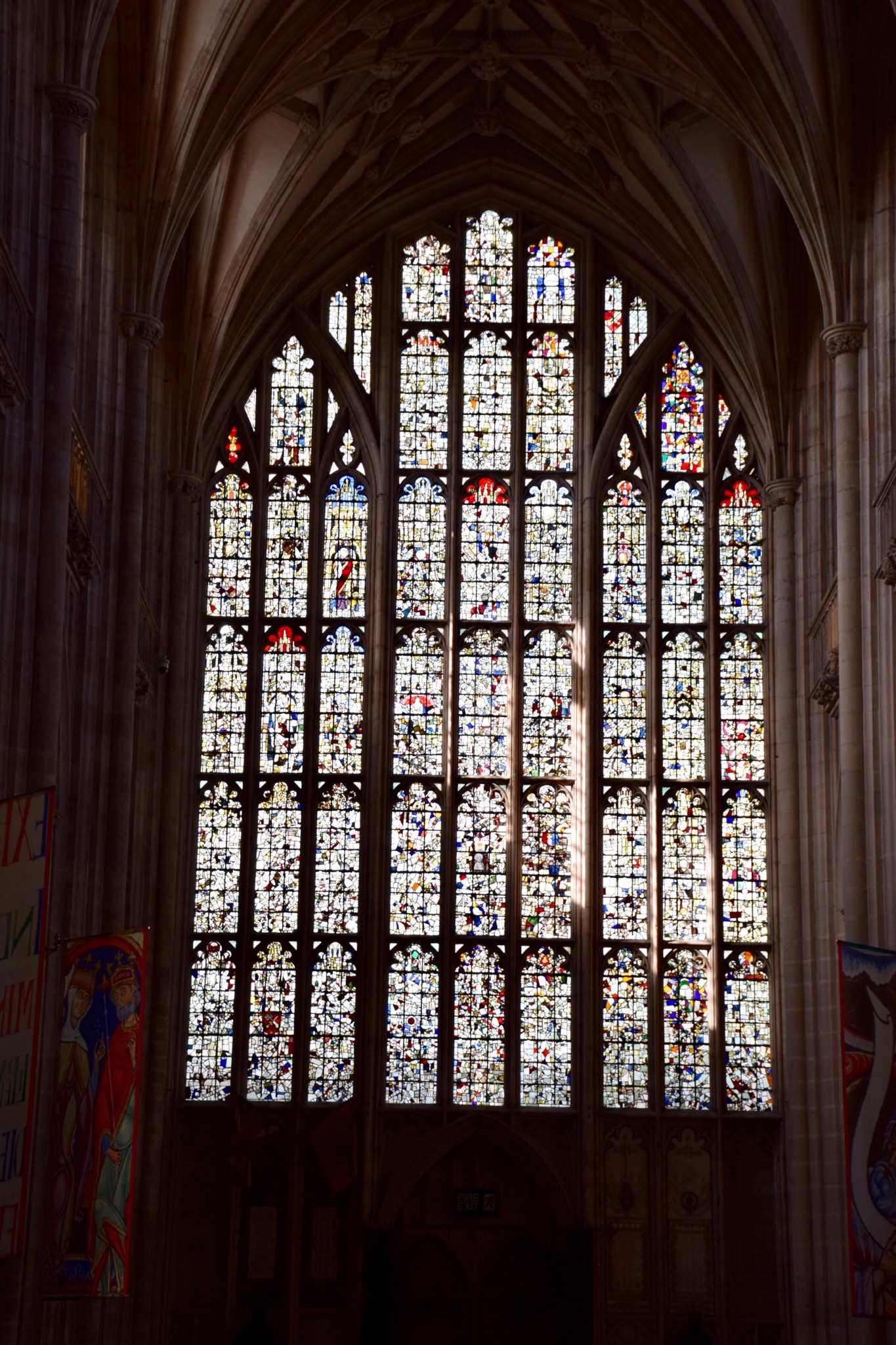 “The earliest glass in the Cathedral dates back to the 1330s. During the Civil War of the 1640s, many of the windows were smashed, although the shards were retained and gradually reassembled” (Winchester-cathedral.org.uk). Some of the stained glass was too high up to be easily destroyed and “this remains an example of late-medieval glass painting and design.” (Winchester-cathedral.org.uk)
