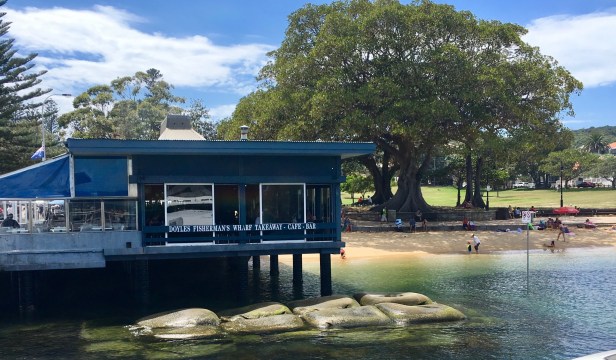 stayed at a hotel close to Darling Harbour and from there it’s possible to walk into the CBD & many other inner city areas of Sydney or take the ferries to various destinations &/or harbourside villages. On our numerous visits to Sydney over 40 years (before that we lived there), we’ve stayed in various places (circled on the map below) that can be accessed by ferry – some of our favourite Harbourside places to visit &/or stay have been in Balmain (where my grandparents’ lived…see photo below); Milson’s Point/North Sydney (near the Olympic Pool on the harbour + Luna Park); The Rocks (historic area); Watson’s Bay (see photos below); Manly; Rose Bay…to name a few. Another favourite Harbourside beach is Nielsen Park, Vaucluse (see photo below)…during cooler seasons we’ve taken ferry to Watson’s Bay & walked (30 min). Lovely nature reserves at all the places listed above – so perfect for a picnic or there are numerous cafes and in some places, restaurants eg. Doyles Seafood at Watson’s Bay (photo below).