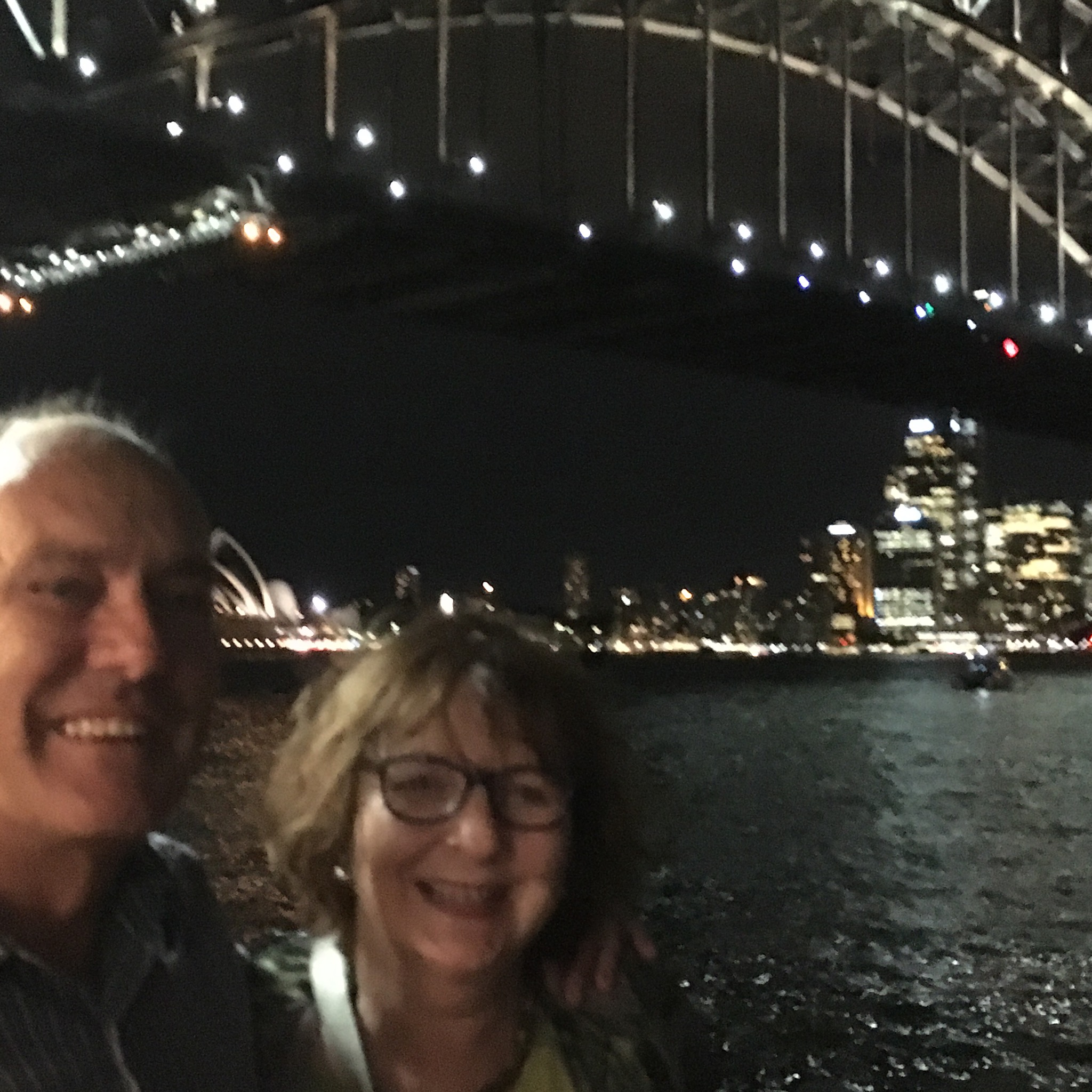 Not a great photo of us but does show how Sydney Harbour sparkles in the evening with the Bridge & Opera House in the background. We took the ferry from our hotel on Darling Harbour to a restaurant near Circular Quay (13 min on ferry/30 min walk) where we met up with my family – on this return trip there were fireworks near the Bridge/Luna Park (I’ll post more photos in kids’ section)…major fireworks occur for special days eg. New Year; Australia Day on 26 Jan but these “mini” ones apparently happen quite often – even mid week (I think this pic was taken at 9ish on a Tuesday night). The ferries & harbour experience helped to make our evening out even more memorable and so much easier than trying to find a parking spot near Circular Quay.