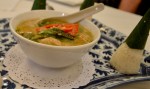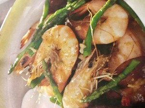 Above photo on left is “Asparagus Stir Fried with Prawns” in David Thompson’s book – Thai Street Food (P230) one of the simplest dishes in the book! The photo on the right is of “Thai Cup Cakes” (P14 in Breakfast section) – more like crisp wafer cups with creamy coconut centres. The coconut filling is sweetened with sugar and the traditional green onion on top is optional. We haven’t cooked them ourselves but we tried them from a Street stall recommended on the Taste of Thailand walking tour mentioned above…quite addictive!