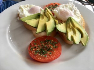 Photos above: Kiama on the left…5 min drive from village; Photo on R – Shellharbour village…on a grey day maybe can’t be compared to Santorini (our Greek post to come!) but it was a gorgeous warm summer day last month & they served an excellent breakfast (photo below).