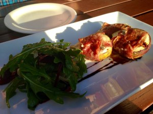 Food plate above at a seafront restaurant in South West Rocks – figs wrapped in prosciutto.
