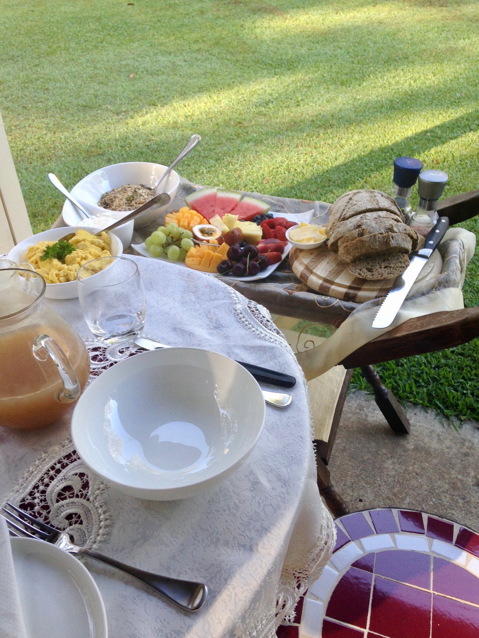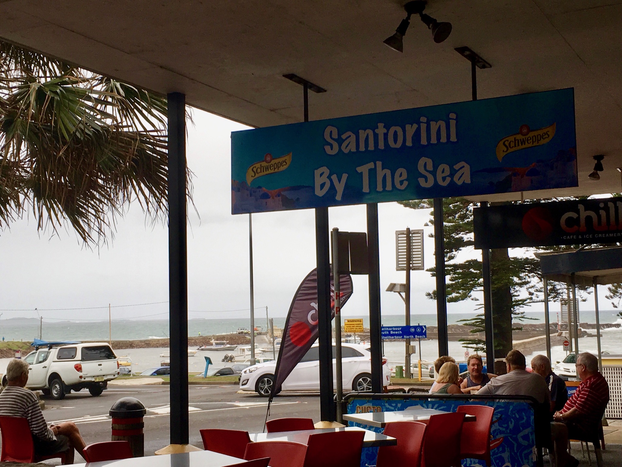 Photos above: Kiama on the left…5 min drive from village; Photo on R – Shellharbour village…on a grey day maybe can’t be compared to Santorini (our Greek post to come!) but it was a gorgeous warm summer day last month & they served an excellent breakfast (photo below).