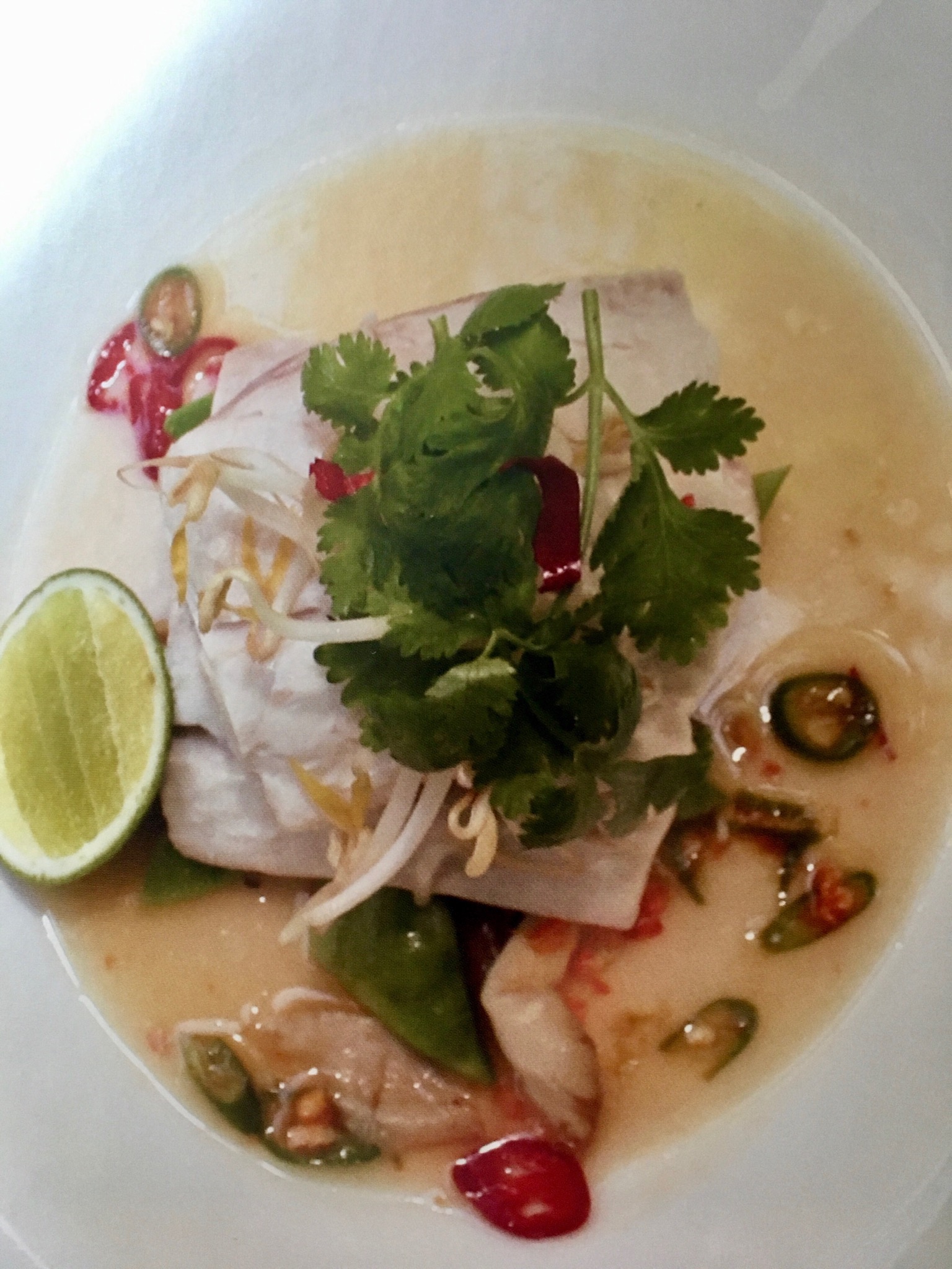 Poached Red Snapper with Hot and Sour Herb Salad P137