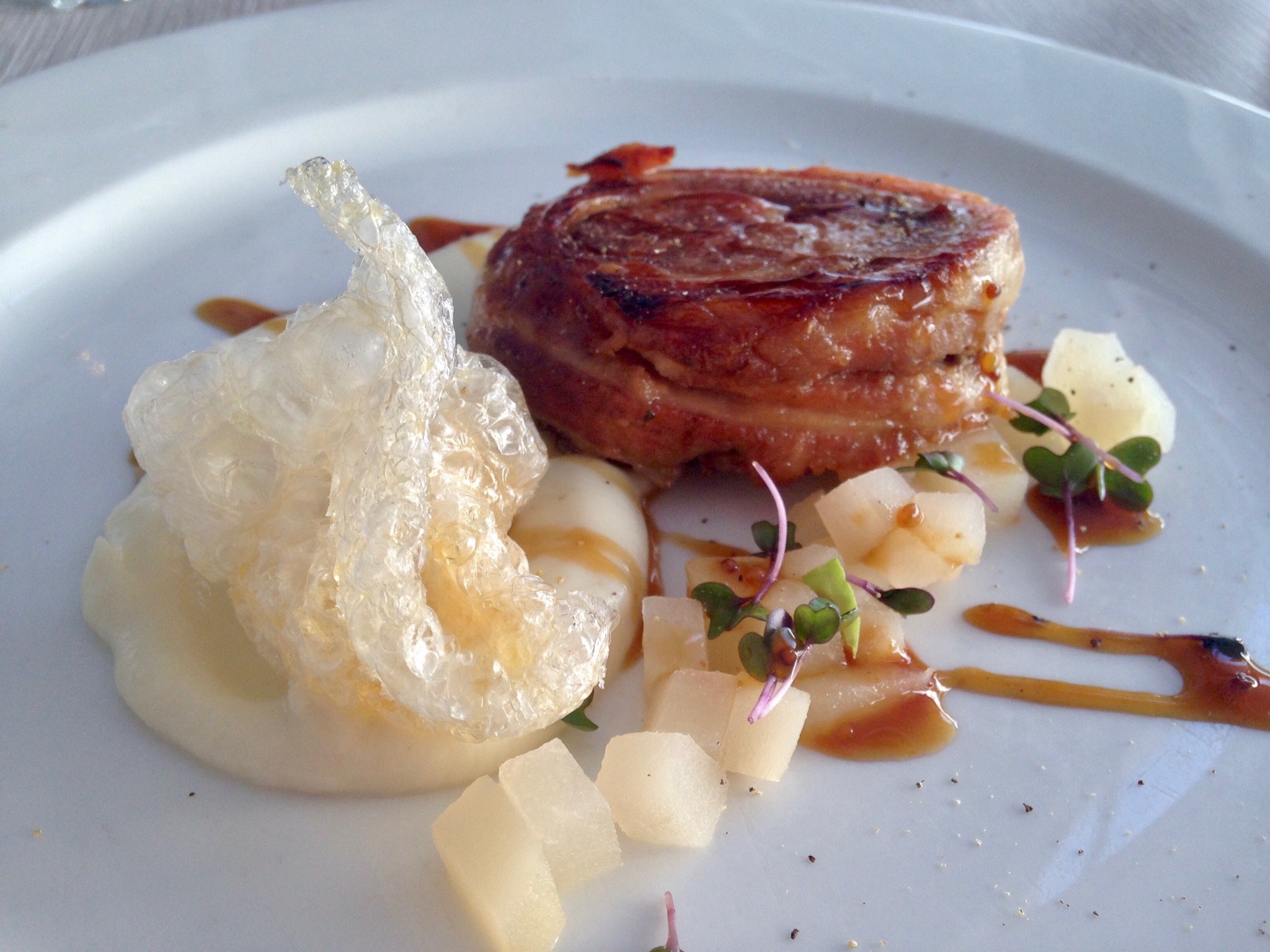 Food plate above at a seafront restaurant in South West Rocks – figs wrapped in prosciutto.