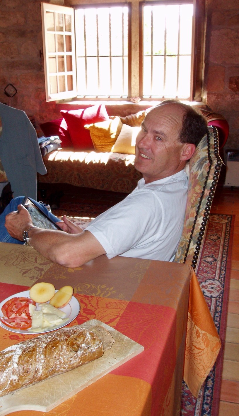In Caunes-Minervois we stayed a week in a 500 year old stone villa near the centre of the village. It was wonderful although the bedroom was upstairs and the stairs are very narrow and steep so with my bad back I was particularly careful on the way down! The villa has a small kitchen so we often visited the Boulangerie each day – they had a range of baguettes and other types of fresh bread; that combined with some cheese etc. was often enough for us after a long day of exploring the countryside. On a couple of occasions we organised a special lunch – a few photos can be seen below from one of those lunches in the countryside…it was on the road to Carcassone (a fortified historic French town – the castle is a must see there too).