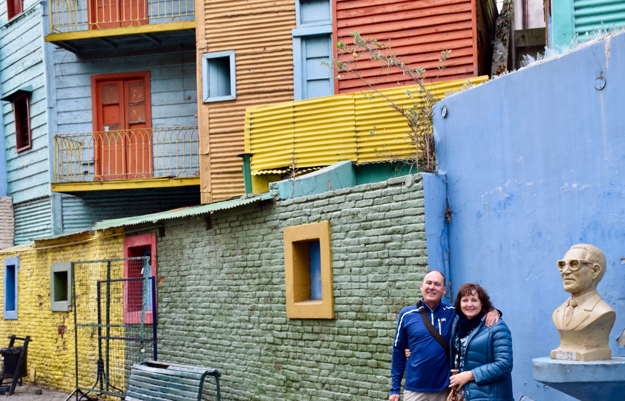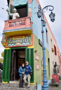 LA BOCA (Caminito) neighbourhood – the traditional housing of the Italian immigrant ship workers. There are also buskers (mostly tango dancers) entertaining tourists nearby…if you stop to take photos our guide tells us that they have high expectations about how much they should be paid. So we took her advice and didn’t linger as we have plenty of tango dancing photos from our travels in Spain. However, the dancing did add to the vibrancy of the area as we walked through. A pleasant hour or so followed by lunch at…