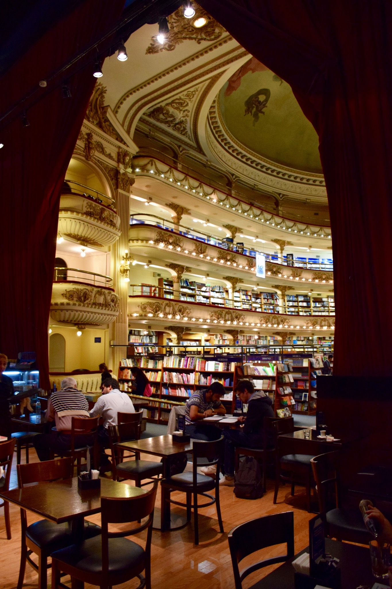 Photo above: Strolling about BA…the Spanish Colonial buildings a beautiful. This is a park in the upmarket area of BA (I’ll note the name of the neighbourhood once I get home and check our journals). Not far from here is a historic bookshop/cafe that was once a theatre (photo below):