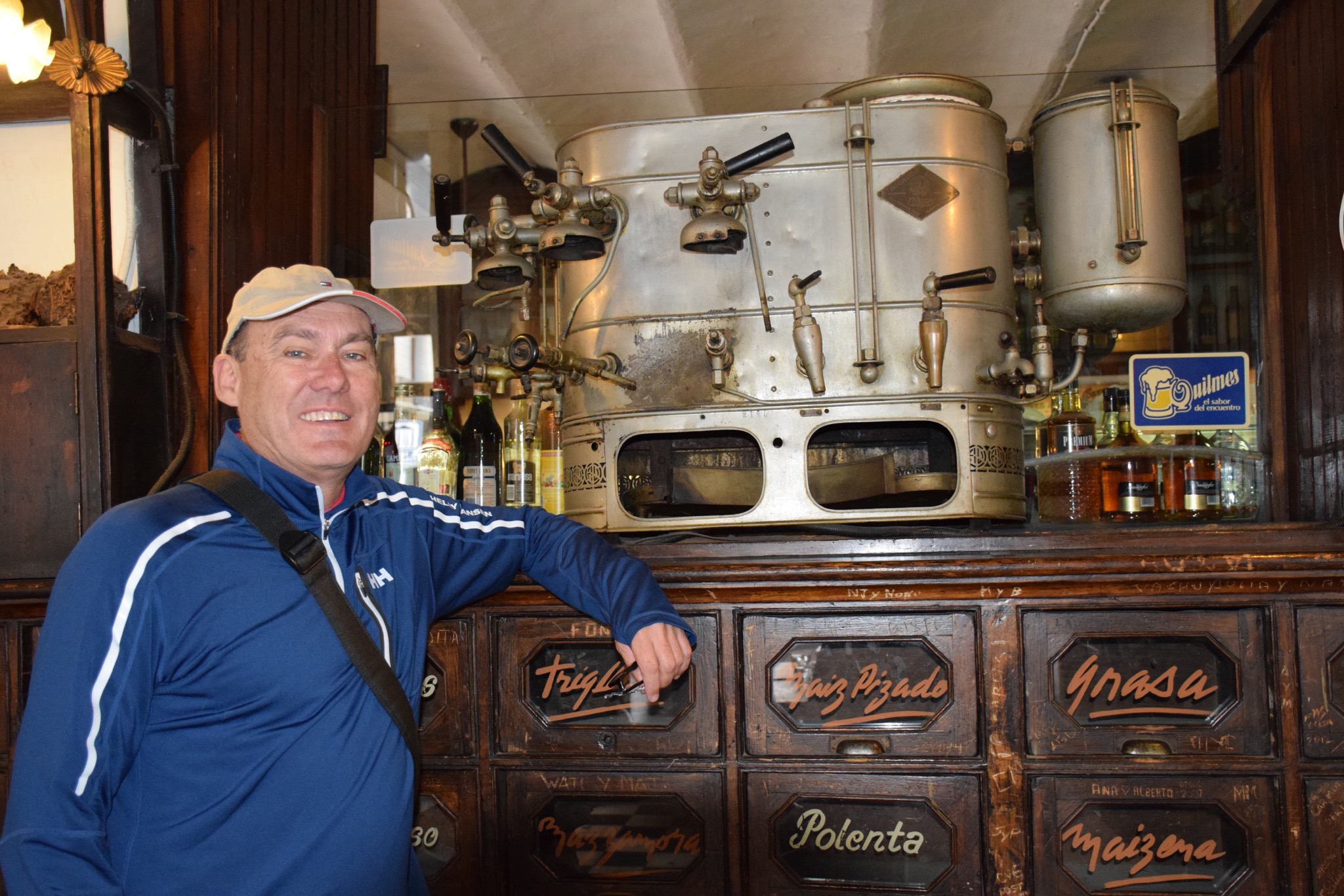 We organised a private walking tour with a guide as there were no “tours for tips” in BA at that time. Our guide was a young woman who had recently graduated from history at University. Of course she knew her Argentinian history but, in some ways, was lacking in tour guide skills so we won’t recommend her (she might not even be doing it anymore!) but she did take us to some interesting places including “the first European cafe” in Buenos Aires. Here is their very first coffee machine! (Photo below). More photos and information tomorrow:)