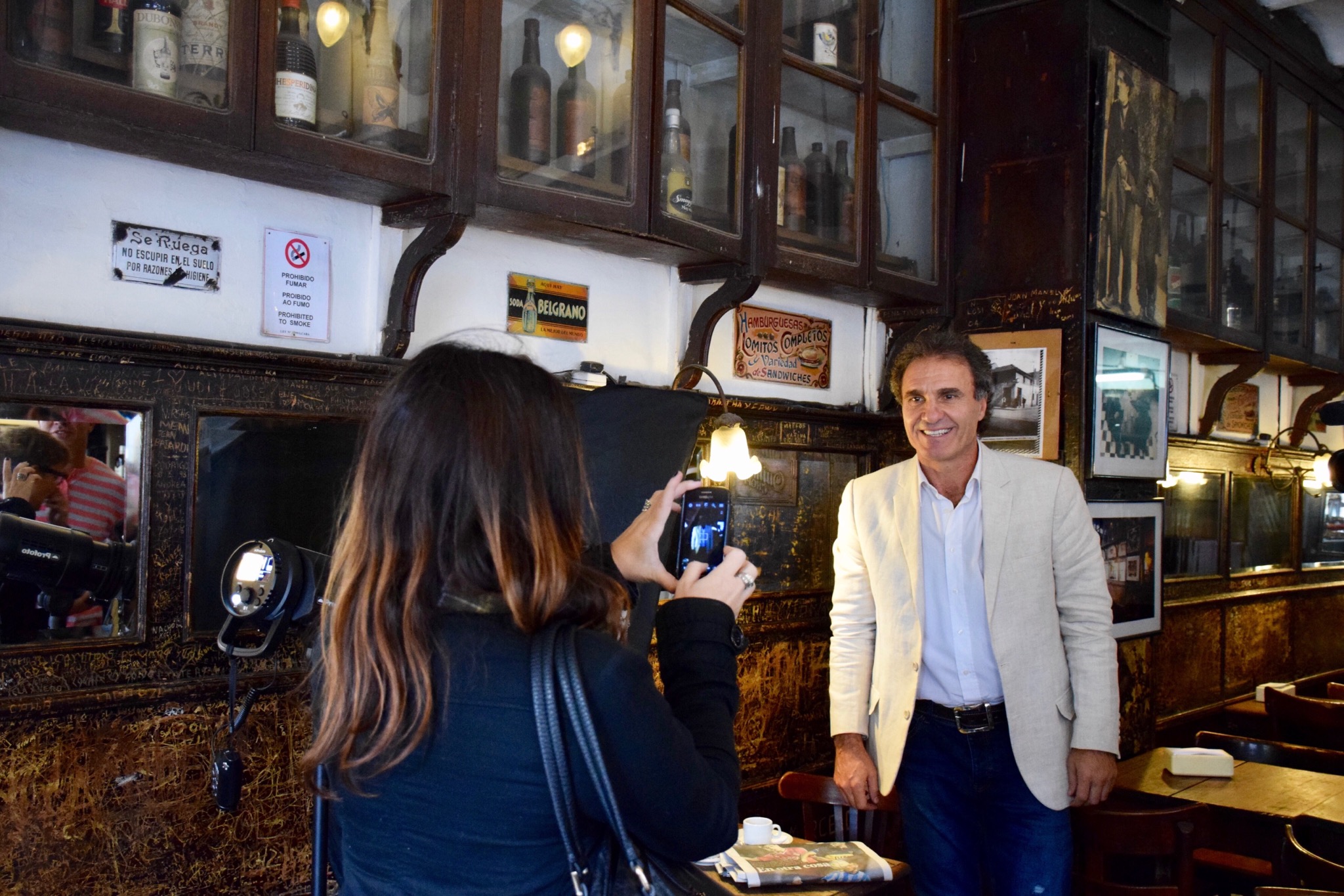 The photo below shows our encounter with a famous Argentinian football star. We can’t remember his name now but our city tour guide was certainly very excited – he was flattered and obliging when she requested a photo. This is a famous, historic bar/cafe in BA.