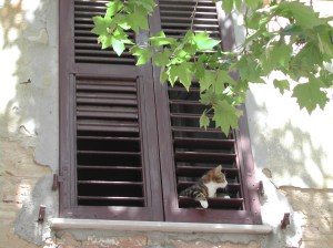 After a big day in and around Pisa we returned to our Villa near Volterra. I’ve also included some appealing scenes in and around Volterra. My favourite is the beautiful sunset we watched most evenings as well as a gorgeous cafe we found in the small town of Volterra – we went here a few times for breakfast/brunch. It looks quiet because there is an upper level where we sat to pick up wi-fi as did everyone else in 2005! We lingered over breakfast/brunch for a few hours here – having a week in Tuscany just wasn’t enough (we needed to return to work in 2005 of course) but we would like to return one day (now retired) and stay for a few weeks to work on improving our Italian cooking and learn more of the language as well.