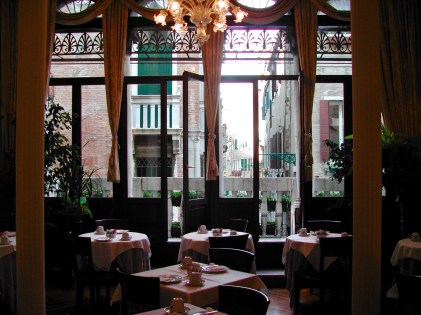 We had 5 nights in Venice and we stayed at a small hotel, on a canal, near the centre of Venice – this was the breakfast room. I need to check our journal for the name of the hotel (archived in our garage so will do another day as it’s 11 pm here :). The hotel was lovely – small room but the fitout, decor etc. continued into the rooms with a romantic, theatrical feel.