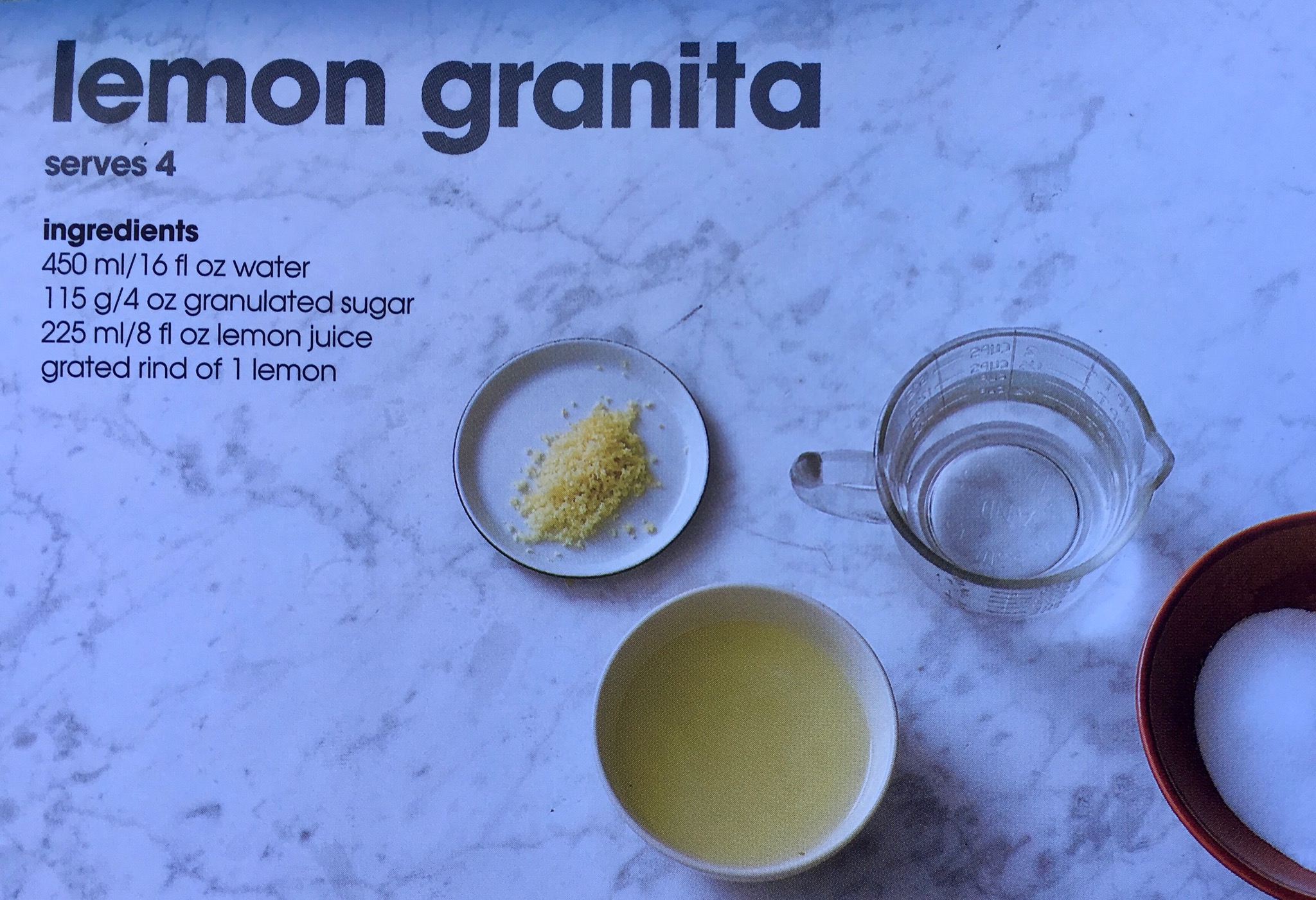 We had many delicious gelatos and granitas while in Southern Italy, so that combined with our own lemons, has inspired us to make a few dishes. Here’s the first which is a refreshing one to make in summer: