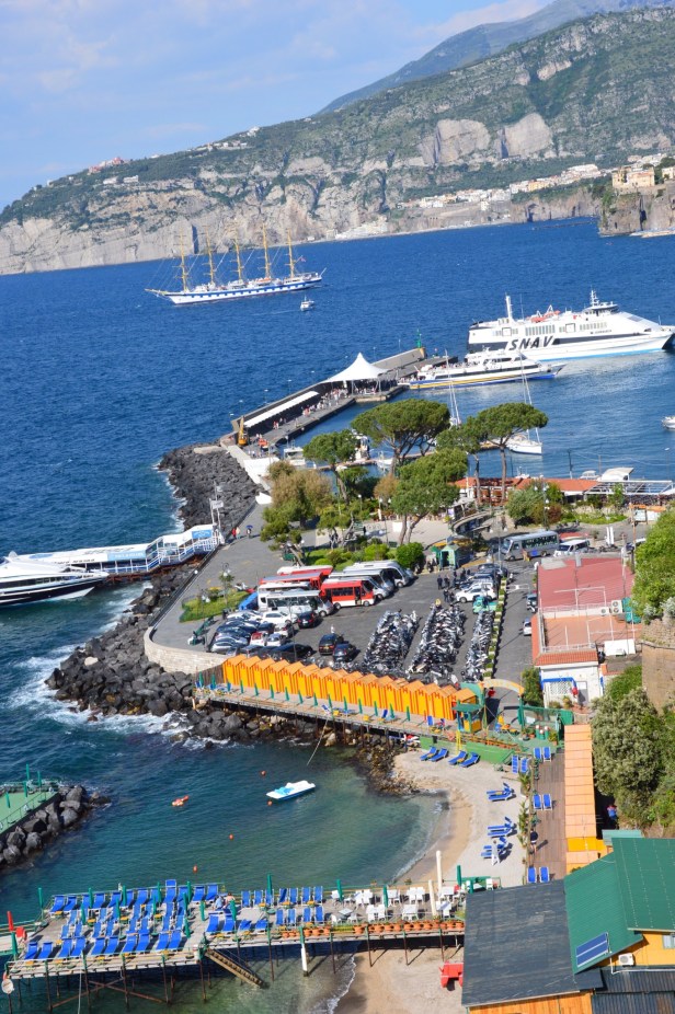 Getting there: Rome to Sorrento by train was approx. 3 hours...that included a very brief stop in Naples where we changed to a regional train. Rome to Naples was on a fast train – very modern and comfortable. The regional train wasn’t as comfortable but it was only a 1 hr trip – we met up with some Canadians doing a similar route along the Amalfi coast and it seemed like no time before we had arrived in Sorrento.