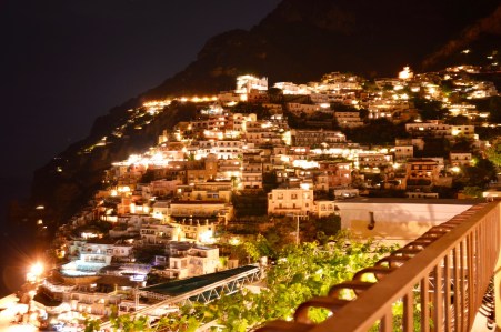 We still made it back to Positano in time for a lovely dinner. See photo below of Positano at night…view from the shared balcony of our B&B where we had a drink before walking to dinner (more photos of this B&B/small hotel in last post – we loved it too!). Positano is also small and easy to walk around if you don’t mind a few steep hills, otherwise the taxi services are very good we heard.