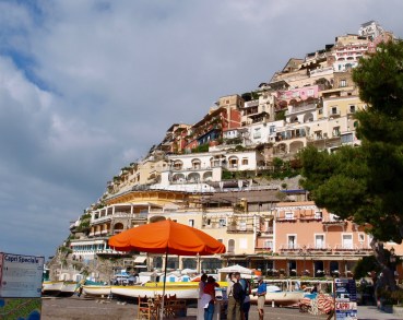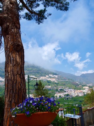 There’s a magical feel about the Amalfi Coast, especially on a mostly sunny day – whether in Positano or Amalfi, these atmospheric views seemed to be around almost every corner; with the mountain backdrop softened by billowing clouds as can be seen in the next photo…