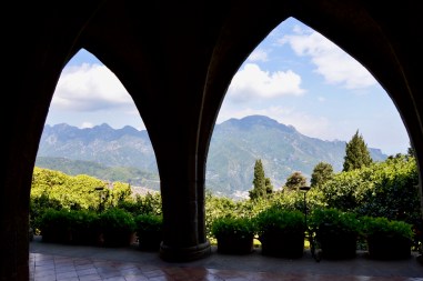 Another view from the covered space at the Cimbrone gardens.
