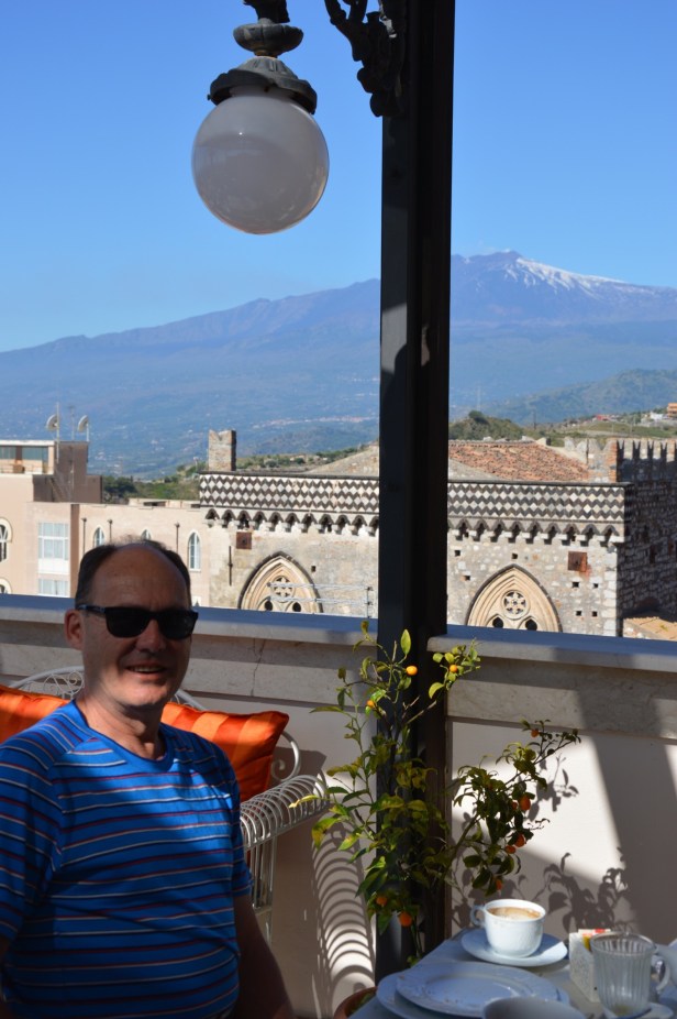 After our long lunch we returned to the hotel for a late afternoon snooze after too many vinos! Much later that night we shared a takeaway meal at the rooftop bar (photo below). We bought a variety of aranchini – Sicily’s street food…so dangerously delicious! Lonely Planet’s Italy – From the Source describes them as “rice balls, coated with breadcrumbs, fried to a glorious golden-orange colour that gives these ‘little oranges’ their name.” Lonely Planet’s book has a complex, authentic recipe. I’ll try to find one that might be easier to make with children – we like to cook with our grandchildren in the school holidays so this post has inspired me. I encourage them to bring their Mum’s favourite recipe (she’s a good cook!) and we also make “one of Pa’s” aka Tony😉. Tony’s a great cook…I’m not too bad but prefer growing fresh herbs and finding ways to use them. Reminds me to take/post a photo of our thriving herb garden – I’ll return this afternoon for that as it’s a beautiful Easter Sunday here and I want to get out and enjoy the gorgeous autumn weather. Happy Easter!
