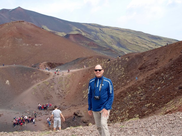 “Mount Etna is the tallest active volcano in Europe…Etna covers an area of 1,190 km2 (459 sq mi) with a basal circumference of 140 km. This makes it by far the largest of the three active volcanoes in Italy, being about two and a half times the height of the next largest, Mount Vesuvius. Mount Etna is one of the most active volcanoes in the world and is in an almost constant state of activity. The fertile volcanic soils support extensive agriculture, with vineyards and orchards spread across the lower slopes of the mountain and the broad Plain of Catania. Due to its history of recent activity and nearby population, Mount Etna has been designated a Decade Volcano by the United Nations.[6] In June 2013, it was added to the list of UNESCO World Heritage Sites.” Wikipedia 2017
