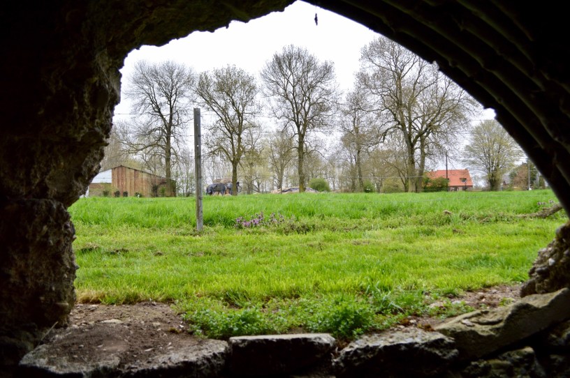 Feature photo: Looking out onto the beautiful, green countryside felt intensely incongruous with the stony, cold bunkers – the chill inside the bunker added to that feeling.