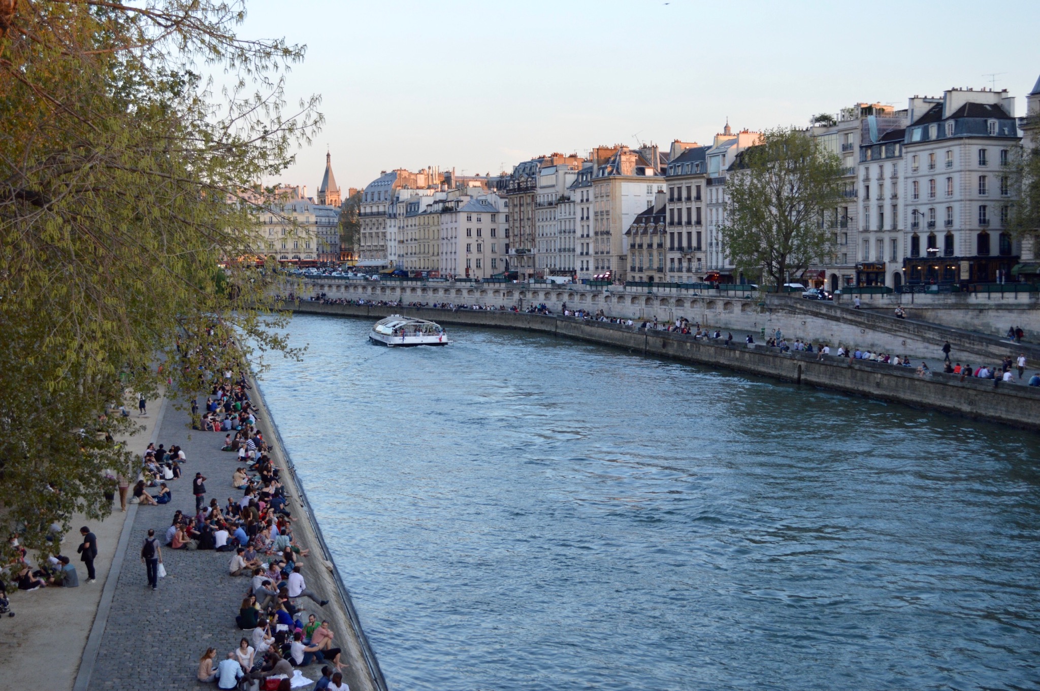Early evening along the Seine – heatwave conditions the day before our day trip (25/4/13) with people trying to get some relief from a breeze off the river.