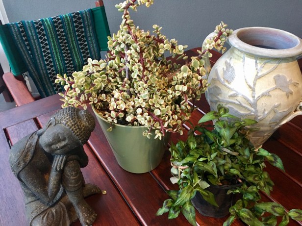 We have a variety of herbs in a garden at our home but according to the woman who sold me Vietnamese mint (right hand corner of photo below), it needs frost protection at night so I keep it on the patio table/under cover. It’s only 30 April but some mornings have been foggy so that indicates that the first winter frosts might be around the corner here in Canberra. From our frequent travels to Asia over the last 35 years, I’ve collected sleeping Buddhas (as well as other Asian artefacts) – I’m not Buddhist but they look so calm & peaceful so that appeals to me! Back to Vietnamese Mint – we just love it’s fragrance/taste…perfect during summer in rice paper rolls. When teaching, we would sometimes have an Asia focus during the middle primary years and making these rice paper rolls was one of the most popular (& tasty!) activities! I’ll post a simple recipe for them over the next few days.