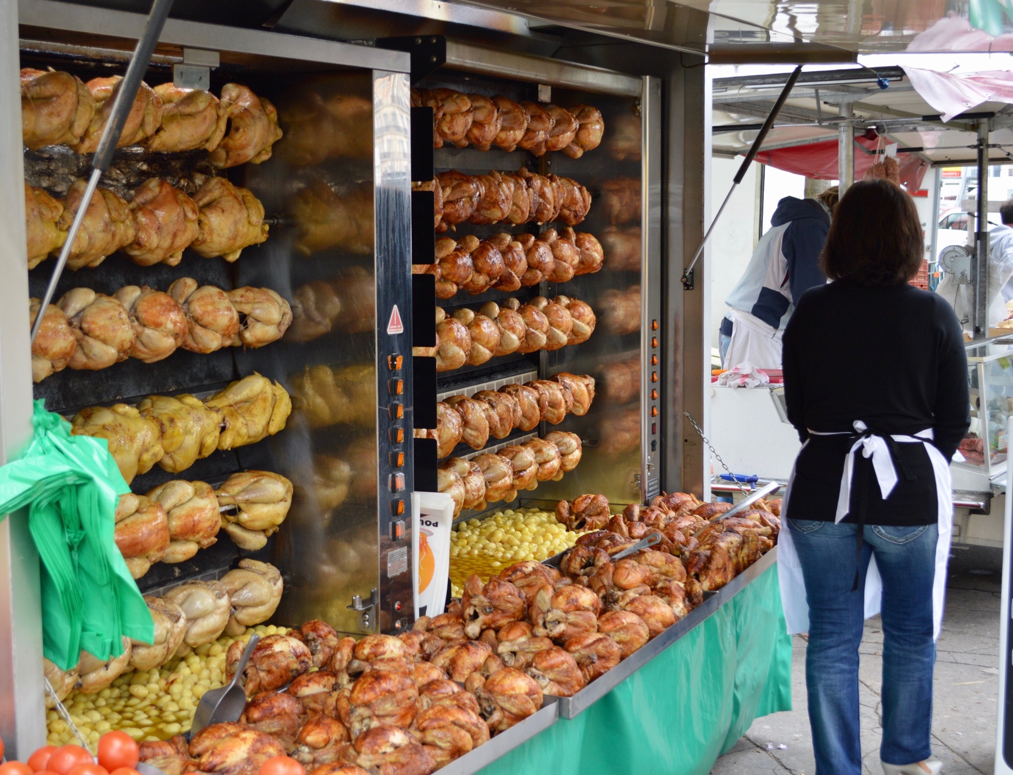 Chicken is popular in France! One of Tony’s photos…I’ve never seen so many chickens on rotisseries and we saw these in various markets; hope it doesn’t make any vegetarians feel too ghastly! To increase our veg intake we do try to have a meat free day, 2 or 3 most weeks but we do enjoy a quality, fresh chicken sometimes – usually cooking it ourselves in an outdoor BBQ oven. I like the way Jamie O and other popular chefs promote higher welfare meat. As children in the 60s we remember chicken being very expensive and usually served only a few times a year including Christmas. In Australia it’s now one of the more affordable meats.