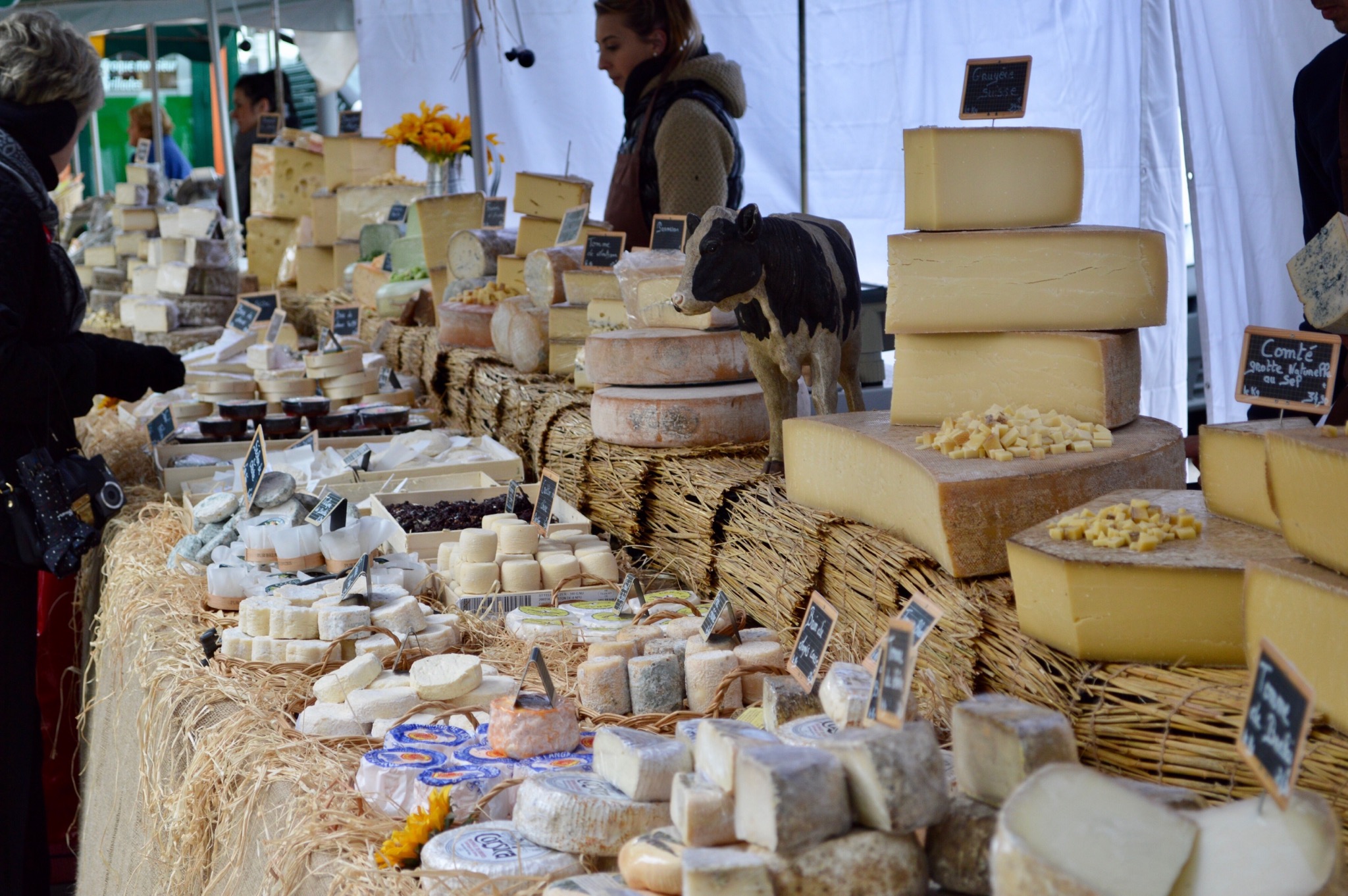Cheeses in France are to be seen to be believed + eaten! In Australia, our cheese industry is developing so well in the cooler southern states of course. Even our Sunday Bus Depot Markets in Kingston (near Lake BG) has beautiful cheeses for sale from a local cheese maker. However, the range isn’t as vast as what can be found in France…