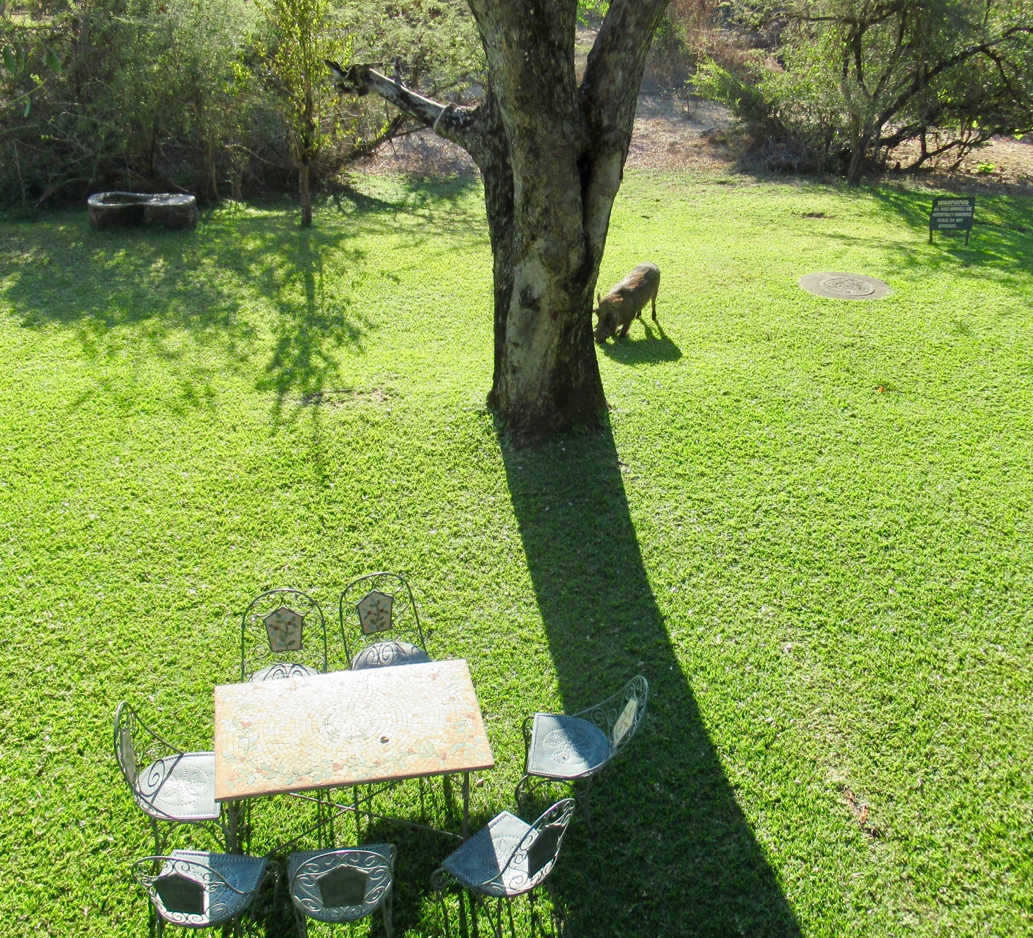 Photo of the Ilala Hotel (where we stayed) below: The hotel architecture and design is so interesting. The walkways between buildings not only gives wonderful views towards the National Park but also protects people from wild animals, especially in the evening when they move onto the lawns to feed on the grass. At night we only walked along the walkways and through the buildings – we felt very safe as there were security guards positioned around the hotel as well. Our room was in the building on the right of this photo – ground floor so we had a courtyard which was nice and sunny in the mornings. This photo was taken after breakfast.