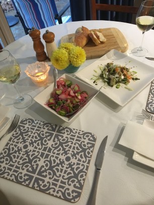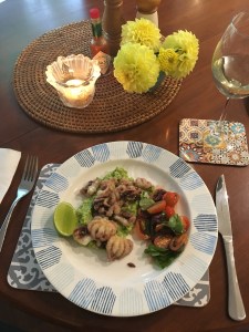 Photo above: I love the silhouettes of 2 people walking along the beach…you need to enlarge to see! We watched them walk from 1 end to the other, stopping to take in the stunning view themselves. Romantic!Seafood inspired…