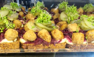 However, we had such a big breakfast (and delicious…photo below at Hotel Rival) that we only ever had a very light lunch (similar to open sandwich in 2nd photo).