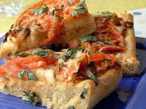 We had trouble finding a cafe at Portofino…we eventually bought some takeaway tomato topped focaccia (delicious…photo below) and a shady seaside wall for a mini picnic!