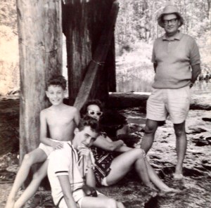 Here’s Tony with his father, mother (very glamorous!) and younger brother…perhaps picnicking and gold panning beside a river (photo below)…they lived in different parts of country NSW during Tony’s childhood. These places often had historic Chinese landmarks nearby or they were established in more recent times (statues/museums etc) to recognise the hard work, and sometimes terrible discrimination, encountered by those early pioneering Chinese…mostly Chinese men attracted to the gold fields from the 1800s.