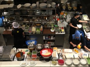 The best thing about it was the interesting view from our seats on the top floor (photo below) + a few innovative ways with mangos (note to self Asian mango inspired recipes at the end of post ). Watching the woman on RHS cutting the mangos so quickly was also interesting. This view kept our granddaughters interest for a while although it was difficult to talk as such a popular and busy place.