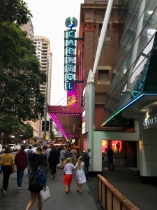 The Carole King Musical was at the Star Casino Theatre near Darling Harbour and on this occasion, just the 2 of us, stayed at a modern Hyatt hotel nearby (view from room photo below). It was an “opening special” at this hotel (view from room in photo below)… just re-opening under a different name when ownership changed hands to Hyatt Hotels.