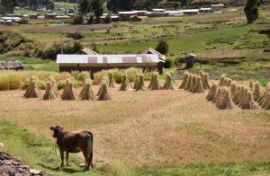 The train stopped here not only for the clothing market (photo above) but also to take in the views of the snowy mountains. The views along this rail line were mostly like this (with fewer snowy mountains in most places)…the better views were when we toured around on the mini bus after our stay in Puno. However, here are a few scenes from the train…