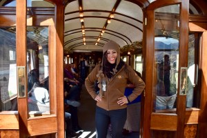 The day started with morning tea, then not long after Pisco Sours were on offer during a women’s fashion show. I suppose they hoped the alcohol encouraged the women to purchase more! However, the rail company had more persuasive strategies up their sleeve (see photo below) if the fashion show didn’t increase their profits!…perhaps I’m being a bit cynical, but generally I’m resistance to pushy selling as we have enough stuff and we’re more into adventure before dementia now😉 Actually “pushy” is really the wrong word as there was very little compared to what we encountered in Turkey – a post for another day!