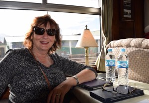 The next two photos give an idea of the quality of the train (before it was upgraded in 2017!) plus the range of ages on the trip – which we always prefer. Tony is still very fit (and I’m better than I was!) and I like interacting with people from all backgrounds and ages – not just elderly Australians. Apologies to any elderly Aussies I may have offended as I know I’m no spring chicken anymore😉