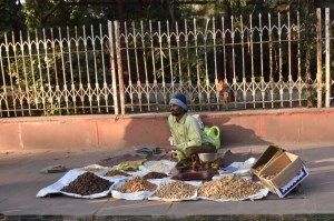 You often see carts and stalls (like the simple one above on a footpath) selling lentils, and various forms of legumes eg. Chick peas – particularly as you travel north into the drier landscapes of Northern India eg. Rajasthan where Jaipur is located (our stop after Agra). Many of the stall owners take a great deal of pride in attractively arranging their produce.