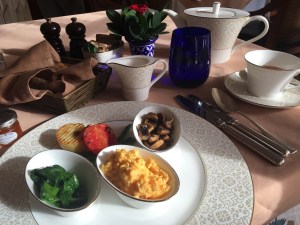 Within India, the Oberoi hotels are in Delhi, Agra and Jaipur (summarised in last post) so they’re able to easily transport different produce between hotels, although we did notice a slight variation depending on the climate/growing conditions of the region. However, the western style breakfast we often had didn’t change so much (photo below). In the evening we were more adventurous with spices/new foods and flavours as can be seen from my first food photo on this post – grilled paneer.