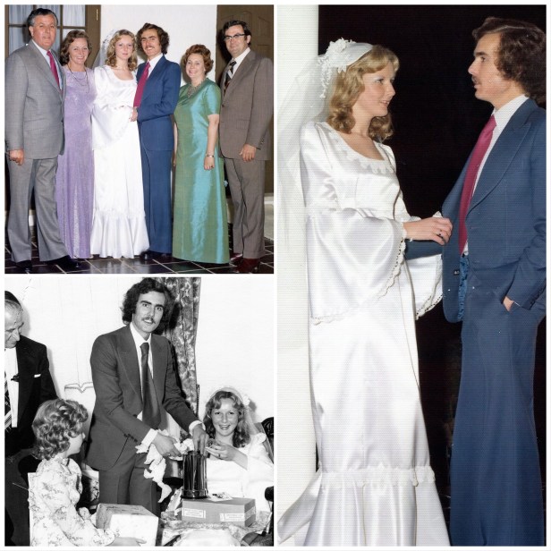 Our wedding was on a cold winter night – 23/8/75…reception was at Tony’s parents’ home in Roe Street, Griffith in Canberra. We wanted to wait until Spring but Tony’s parents (Joan…in green dress) & Nelson, weren’t impressed with us living together, even for a few months before the wedding! How times have changed!