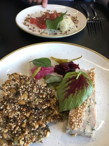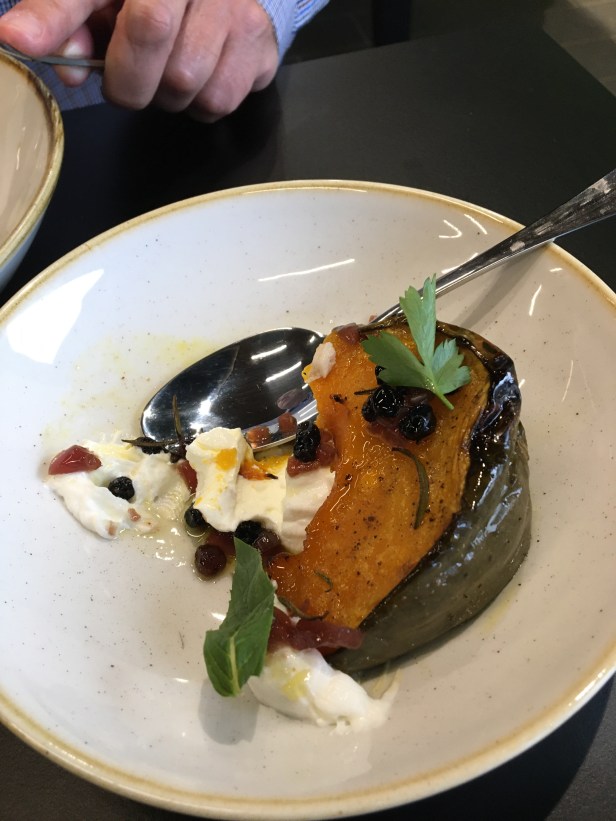 At the end of the awful bushfires and before the pandemic began we had a window of opportunity for a visit to one of our favourite restaurants – Tallwood in Mollymook (near the beach). The photos below show 2 plates from that evening. We came home and made a similar crispbread recipe which we found on the Net…it was simple and turned out really well. We also found a similar pumpkin recipe on the Net …it goes well with the cutlets in recipe above.